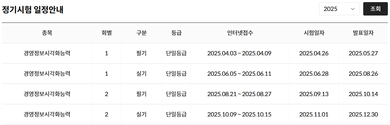 2025 경영정보시각화 시험일정 안내